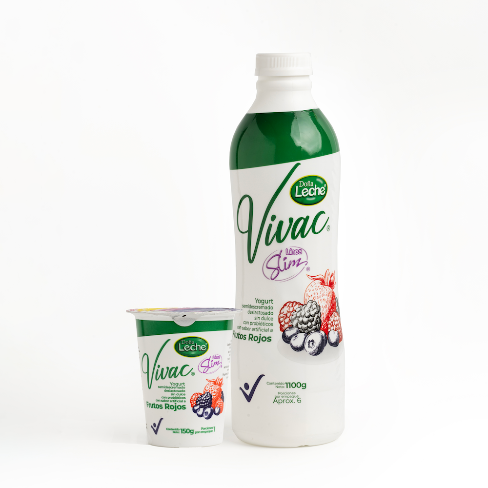 Yogurt Vivac Frutos Rojos Semidescremado, Deslactosado, sin azúcar adicionado y con probióticos.