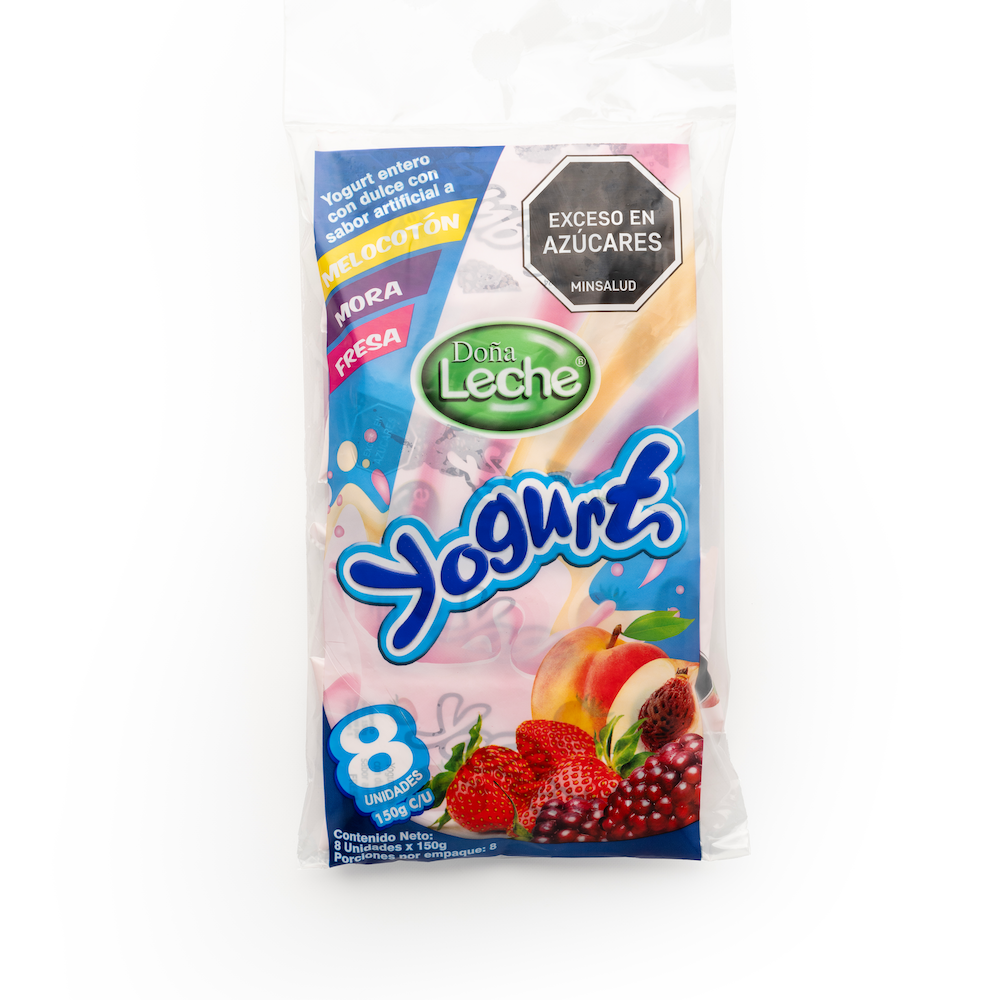 Yogurt entero con dulce con sabor a Fresa, Mora y Melocotón.